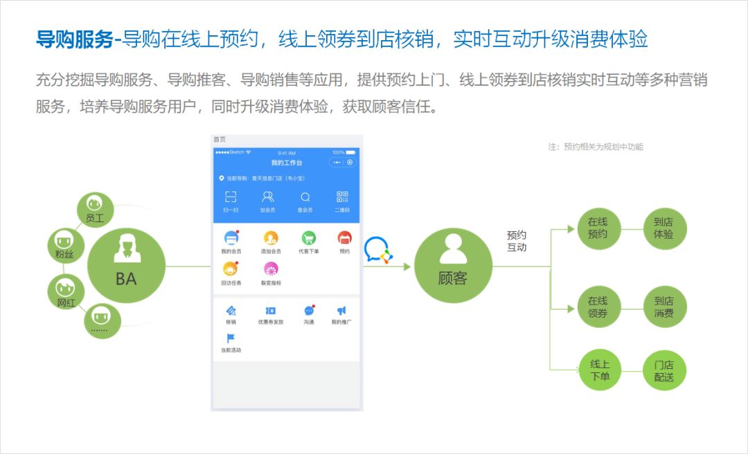 2、顾客离店才是生意的开始,门店24小时不打烊,导购提供在线服务,为用户提供及时快捷便利的购物体验;
